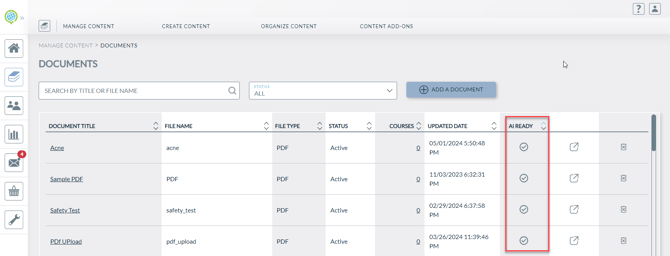 If a document is able to be converted into an assessment, there's a column in the documents section which will show a checkbox with a circle.
