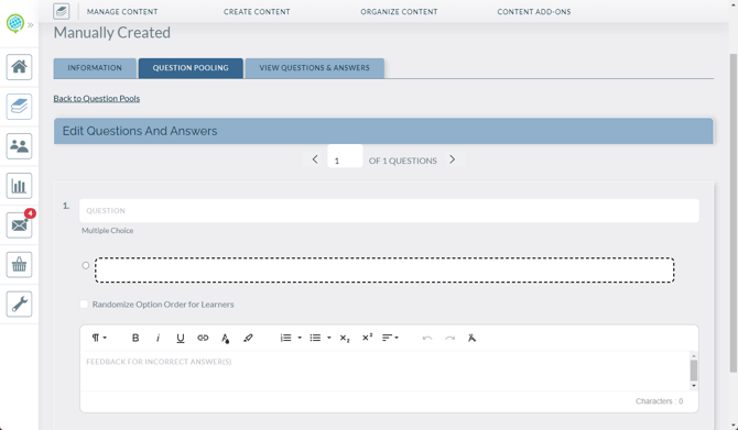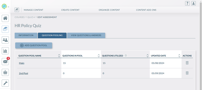 The Question Pool is where quiz questions are stored. After creating a quiz, you will be directed to the question pool screen.