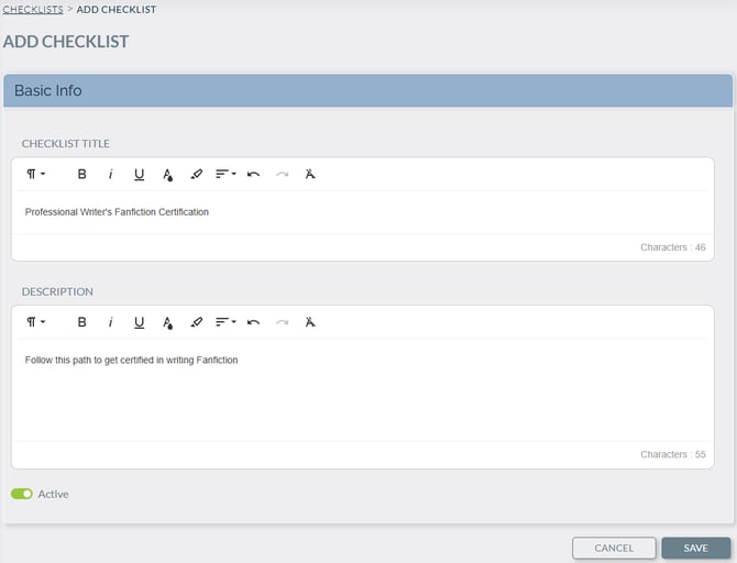 Checklists allows administrators to create, assign, and manage structured task lists for learners. This feature ensures new hires or role-based learners complete all required steps in an organized and trackable way.