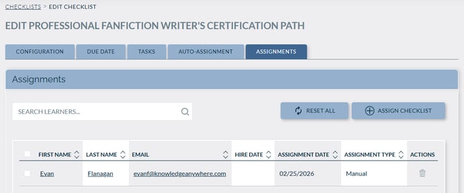 - Assign the Checklist to specific learners by searching their account.