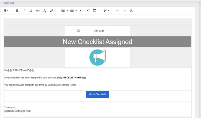Checklist Assigned - This email is sent when a learner is assigned a checklist