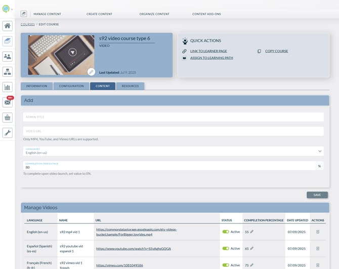 Completion Percentage: How much of the video the learner needs to be watched to be marked complete.