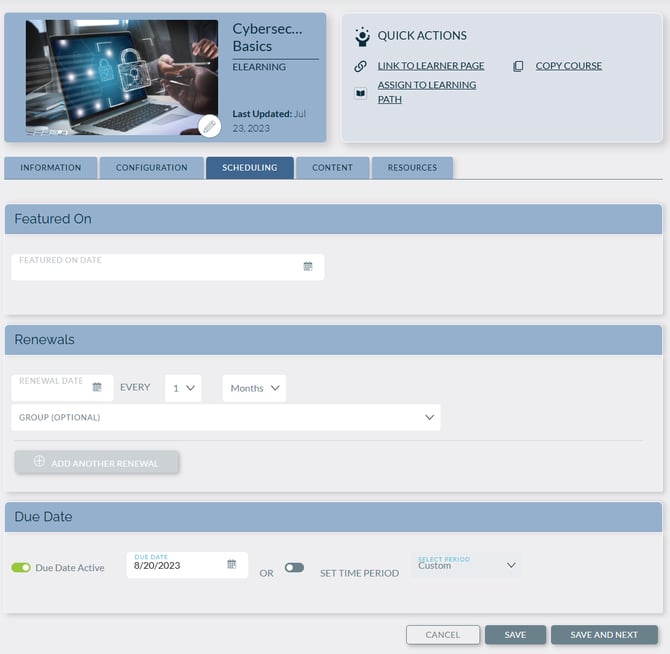 - Enter a Due Date, which means learners must complete the assigned course by a specific date