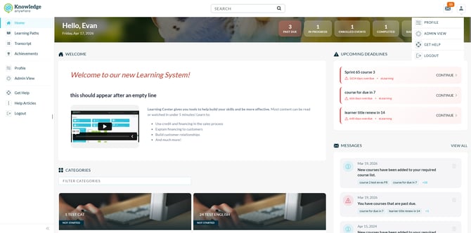 Site Messages are back. Admins can once again publish announcements that appear to learners in a preview upon login, useful for policy reminders, upcoming deadlines, or welcome content. This feature was temporarily unavailable following the March 24, 2026 Learner Homepage update and has now been fully reintroduced.