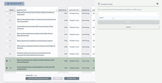- Move Questions Between Pools: Within an assessment, admins can shift questions between pools using a new "Change Pool" option. The sidebar lists available pools, and questions are moved to the bottom of the selected pool. Archived questions or those with completion data cannot be moved.