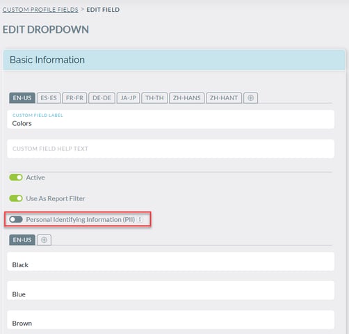 Implemented PII settings to obfuscate custom user fields based on Admin PII configuration.