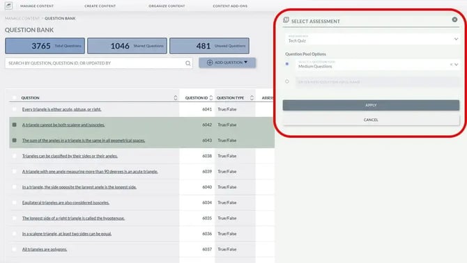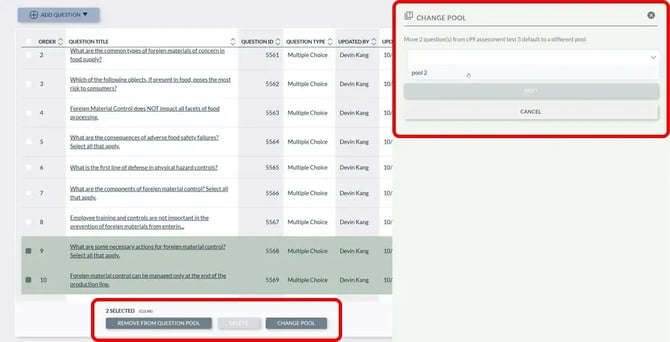 - From within a question bank, questions can be assigned to a specific pool in an assessment.