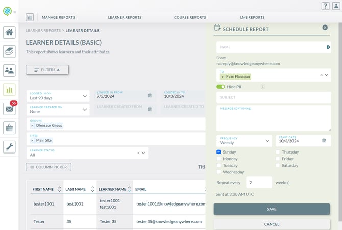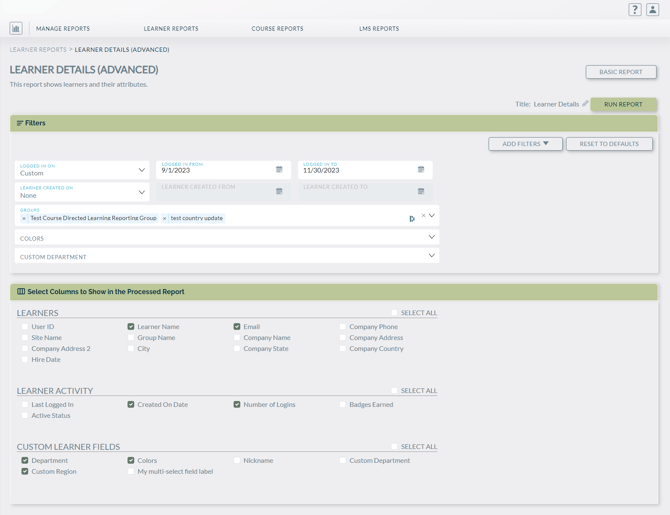 Learner Reports - These reports are all about the Learners and how they fit into the LMS.